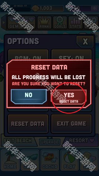 3、出现的页面里选择【yes】就可以重置游戏重新开始了。