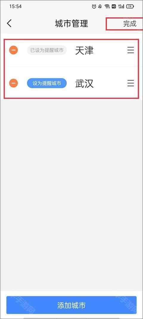 3、将城市添加成功后,如果想进行排序、删除等操作,点击点击右上角的“编辑”按钮来设置,设置好了即可查看天气信息。