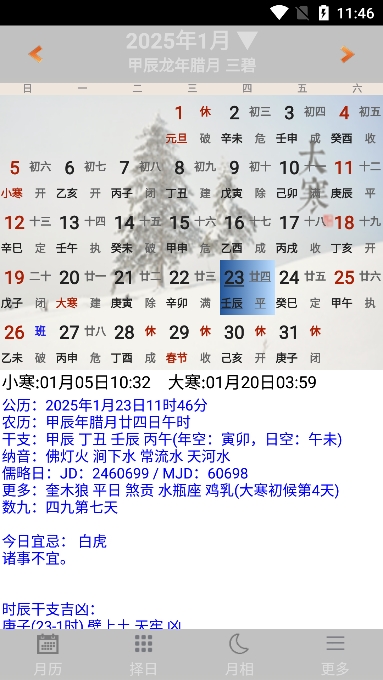 5、易学万年历查看节日节气,每日宜忌以及运势走向