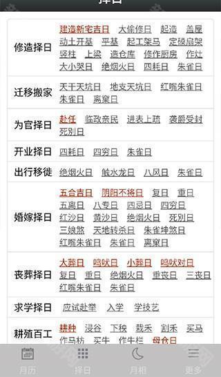 2、包含各种择日宜忌事项,可以按照需求选择查看。