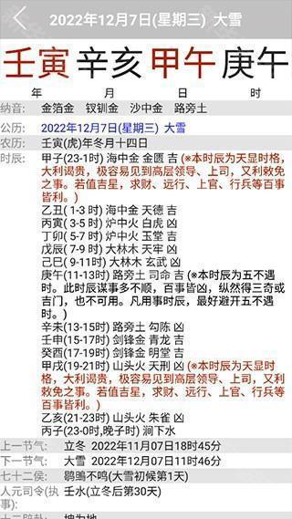2、提供每日宜忌、时辰宜忌、五行、冲煞、中国星座、西方星座、诸神方位、财喜罗盘、胎神占方、彭祖百忌、凶神宜忌、吉神宜趋、二十八星宿、十二建除、值神、六耀、九星、岁煞、物候、日禄等全面的黄历信息和对应的白话文解释。