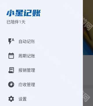 1、打开小星记账,点击左上角的设置功能选项,然后选择“自动记账”功能。