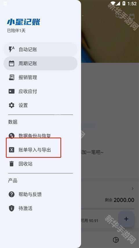 小星记账怎么导入账单1、点击左上角的设置功能选项,然后选择“账单导入与导出”功能。