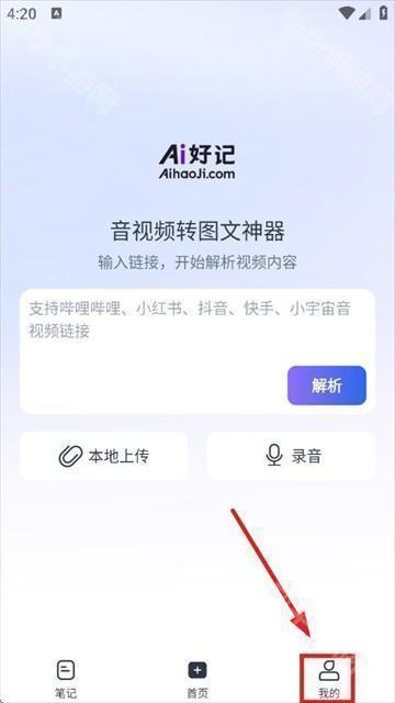 1、首先打开Ai好记app,接着点击右下角“我的”选项;