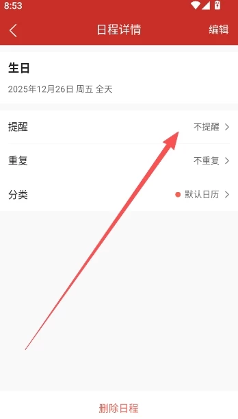 在此处进行日常详情的设置,挑选提醒的次数与分类,设置完成后进行编辑保存,回到首页就可以了。