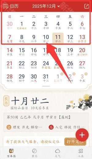 6、想知道今天的财神喜神方位吗?轻点手机,打开万年历,转动罗盘即可知道。