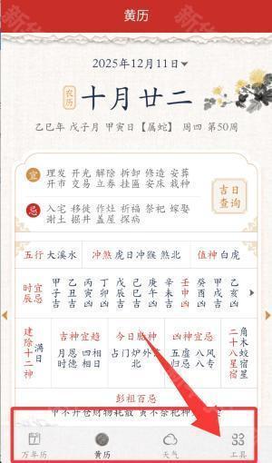 2、年鉴:教你轻松学会选择好运,今天的禁忌、农历禁忌、吉日问询、五行攻邪、造除十二神、二十八星,一目了然,心中有计划,行动顺畅,祝你好运;