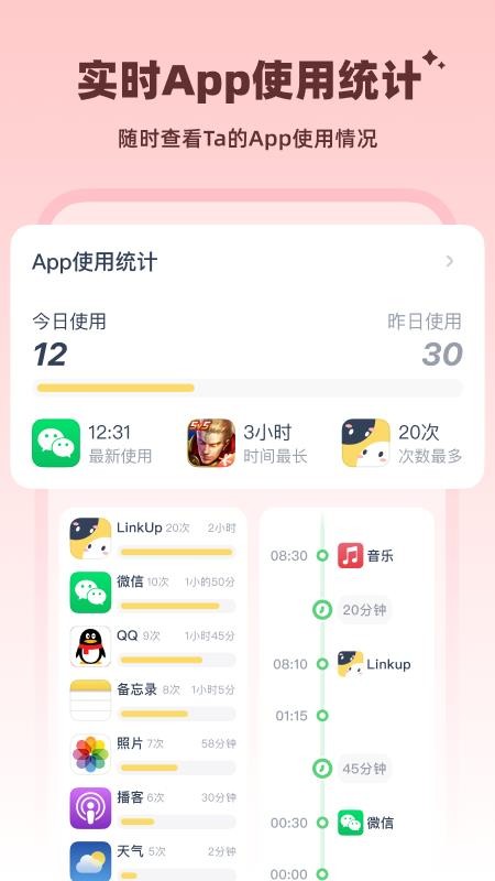 全时段get对方的手机屏幕使用时长、解锁次数以及相关APP使用记录,互相监督健康用机!