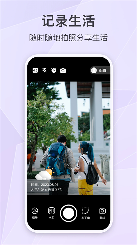 1.位置、时间和智能水印会自动添加到照片中,你的水印是最终决定权。