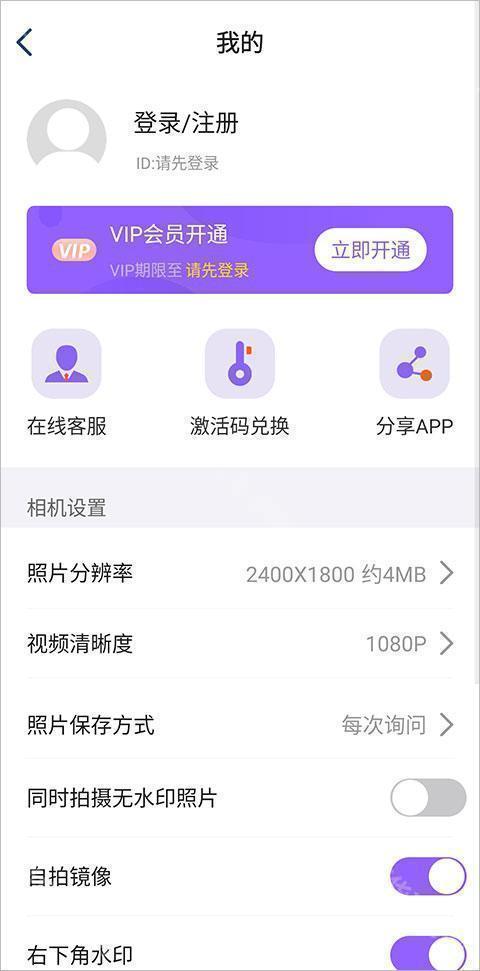 1、进入定制时间水印相机APP,点击“登录/注册”。