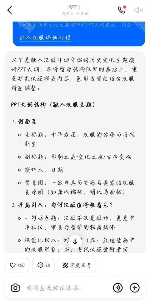 3、点击该模型进行对话页面,在对话框中描述你想要生成的ppt。