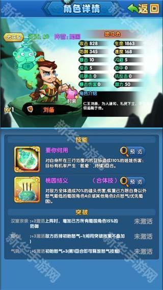 刘备——输出型武将,阵营所属:蜀国,成长资质:18,技能:阿斗波动拳