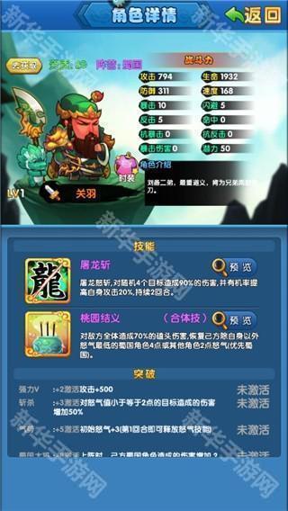 关羽——肉盾型武将,阵营所属:蜀国,成长资质:20,技能:青龙偃月斩