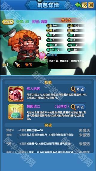 张飞——肉盾型武将,阵营所属:蜀国,成长资质:20,技能:阉人咆哮