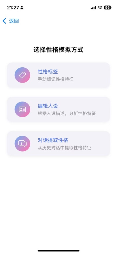 2、你可以选择性格标签、编辑人设以及对话提取性格等功能。
