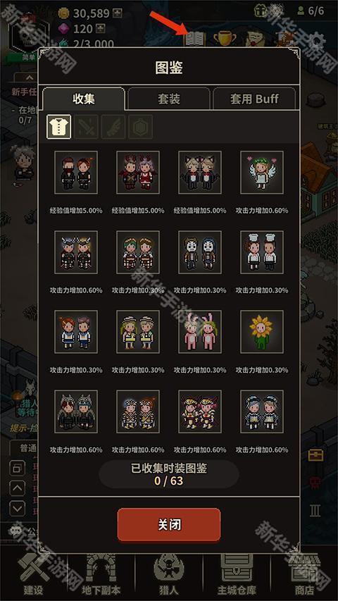 10、选择上方【笔记本】图标,可查看关于收集、套装和套用Buff的全部图鉴,