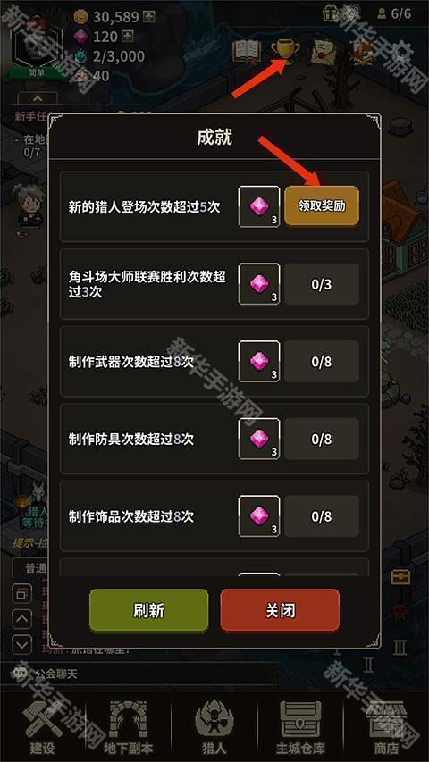 11、选择上方【奖杯】图标,可查看各种成就的要求,完成后可领取相应的奖励,