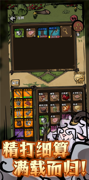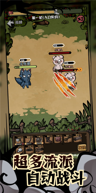 这款游戏是一款简单的搜打撤冒险,而且战斗采用的是回合制,你面对的羊是敌人,而猪是中立角色,玩家的属性越高,战斗的胜利越高,注意只有撤得出,你才能得到资源。
