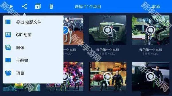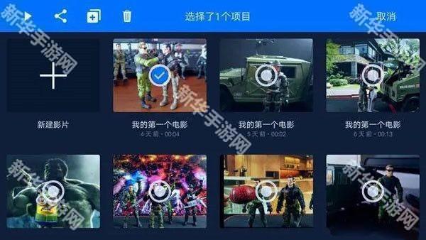 8、然后返回主页面,点击右上角的选择,勾选上你要导出的短片