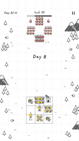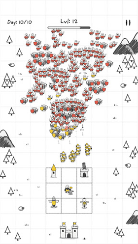 《岩纸王国》这是一款关卡塔防类型的游戏,游戏由“TapHub Games”工作室出品,玩家将在黑白稿纸上,开始一段中世纪怪物冒险,玩家将不得不从众多不同类型的部队中进行选择,合理升级和部署,建立强大的防线,将下级部队的卡片拖入3×3九格战场,编队完成后,开始自动战斗,击败一波又一波的敌人并晋级关卡。在每一场战斗中,他们都会打败更多的敌人,掠夺更多的领土,赢得战争。