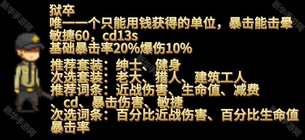 狱卒:唯一一个只能用钱获得的单位,暴击能击晕敌人