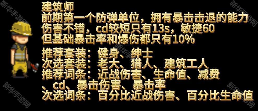建筑师:配备防弹衣,是前期唯一的防弹单位,打第三大关推荐使用