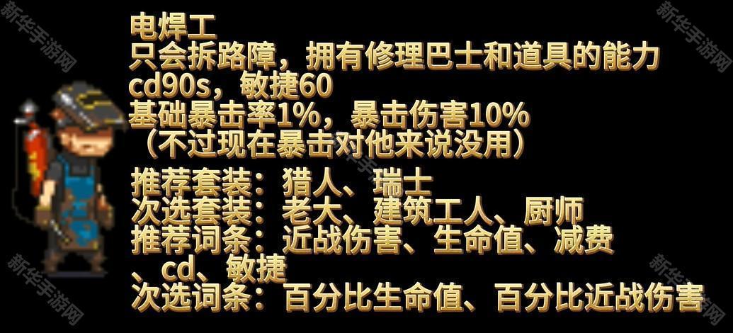 电焊工:只攻击路障,攻速快,拆家好手,cd超长,防感染,血少需要保护,死后爆炸