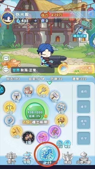 1、开局只能选择唐三或奥斯卡,进入游戏后通过不断点击下方中间的锤子按钮获取魂环,因为角色选择的是唐三所以是锤子,选择其他角色会随着变化。