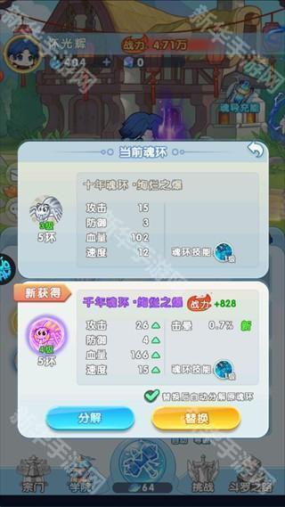 2、将获取到的魂环装备上,属性高的选择替换,属性低的分解。