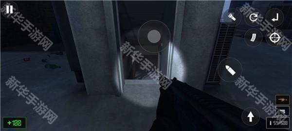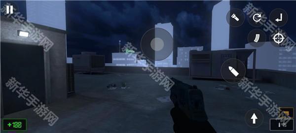 4、左方是控制角色移动,右下角是控制角色跳跃,右侧中间是开枪射击的按钮;