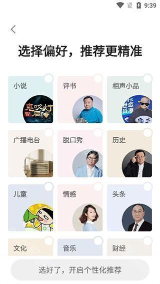 2、还需要勾选自己感兴趣的有声资源,方便智能推荐用户感兴趣的内容;