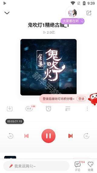 5、在播放有声资源时,可以上下切换以及下载至本地,还能够倍速播放。