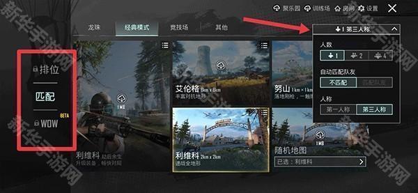 5. 然后根据自己的喜好选择地图,点击右上角还可以选择单排、双排或四排