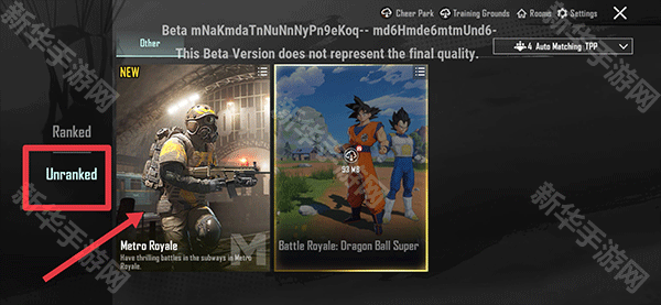 2、进入后在unranked模式中选择metro royale地铁逃生模式