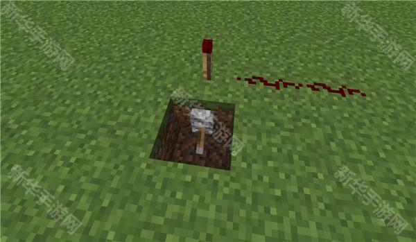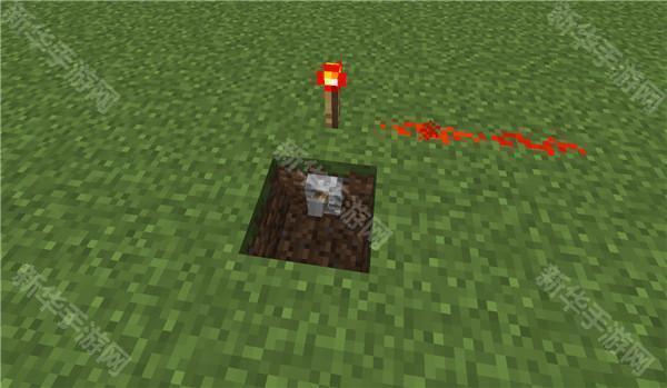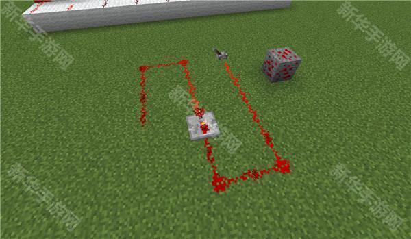 如图所示,与红石线相连的是我们要介绍的红石信号发生源。