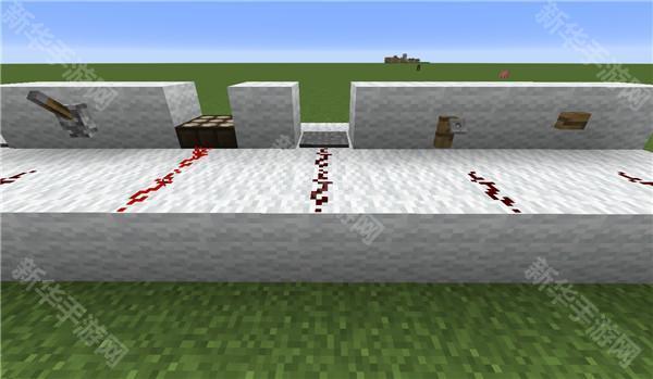 介绍完了中继器,下面让我们来笼统的介绍一下可以发送红石信号的方块。为了方便大家直观看到他们的样子,我将会在白色羊毛上放置这些方块。