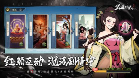 《武道对决》以手绘卡通风格,为玩家打造了一个如诗如画的绝美武侠世界。作为一款卡牌对决类游戏,玩家可以通过收集各种强大的角色卡来和敌人展开武侠之间的战斗。不同的角色拥有专属的技能和定位,玩家需要灵活运用策略,找到最佳的卡牌搭配,体验更具策略性的玩法。游戏还有一套完整的养成系统,玩家可以不断提升自己的实力,赢得强大的对手。