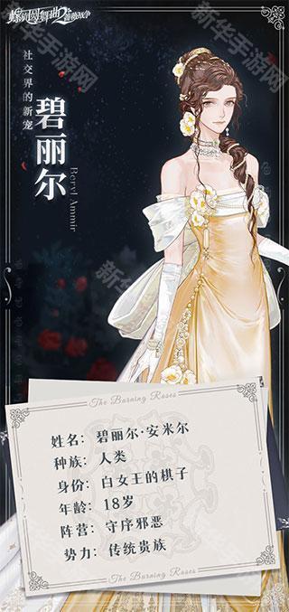这名年轻的淑女是安米尔伯爵唯一的女儿。当她来到罗萨拉城、站在明亮的舞池灯光之下,她含羞的眼眸、微笑的嘴唇,她温柔的谈吐和得体的礼仪,无一不向人展示着她的良好教育和优渥家境。是的,她是一名真正的、传统的贵族淑女,她将为女王献上一切。