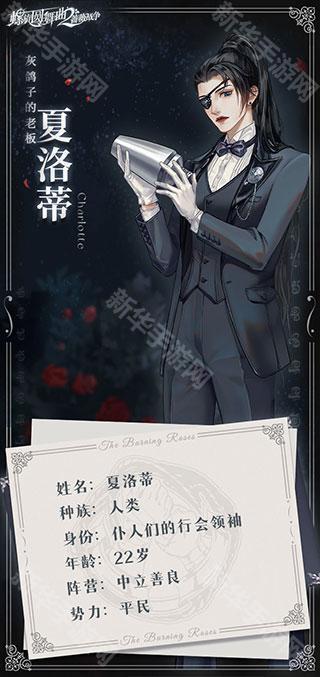 夏洛蒂,和往常一样,站在灰鸽子吧台后侧,打量着她所撑起的这一方天地中来来往往的过客。一直以来,仆人都只是主人们的工具,而夏洛蒂守护着这个城市中,属于他们的、唯一的自由空间。她锐利的目光,能穿透虚伪言辞和款款笑容,而她老练的手段,又能隔绝威胁和敌意。这次,她的目光放在了一名红发少女身上……也许,她可以带着她一起走进新的天地。
