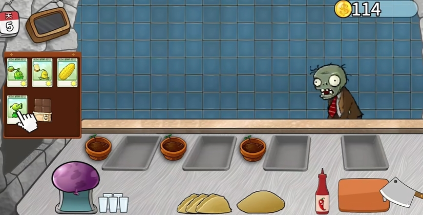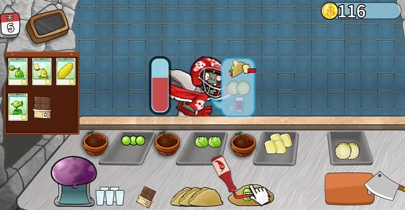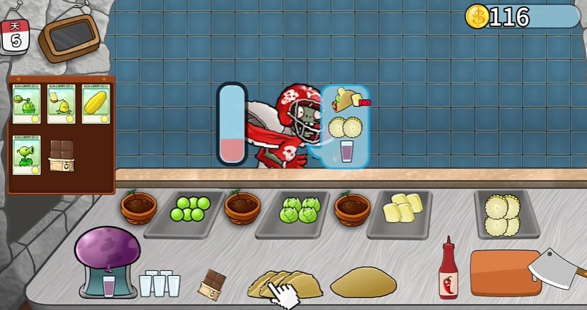 1、游戏中你需要满足不断前来的僵尸,用各种食材来进行制作。