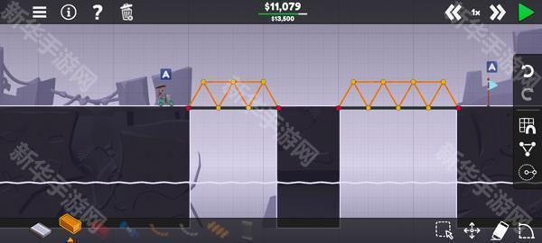 3、完成新手教程后就可以正式开始游戏了,玩家需要使用左下方的材料搭建桥梁;