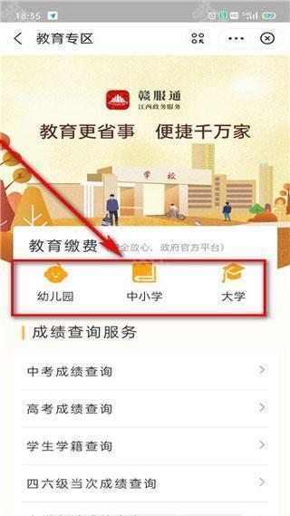 7、进入在上方就能选择孩子就学学段进行缴费。