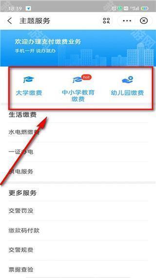 6、进入主题服务,选择【支付缴费】;