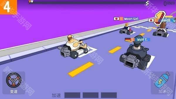 玩家点击右边加速图标即可增加速度,一共有三个档次,连按三下即可达到最高档,按下加速冲过终点。