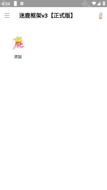 1、在本站下载安装迷鹿框架v3后,打开,点击添加图标;