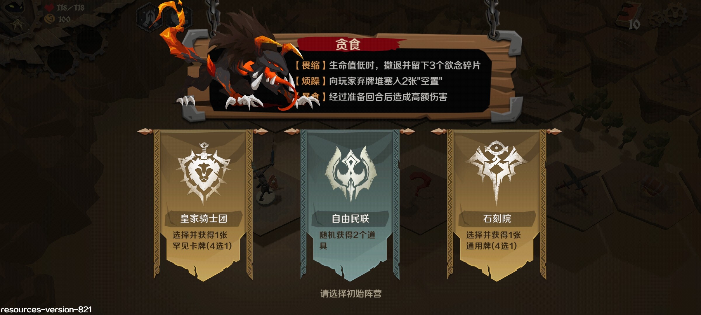 1.进入关卡可以看到本层boss和特性,在阵营上面。(下图boss为贪食)