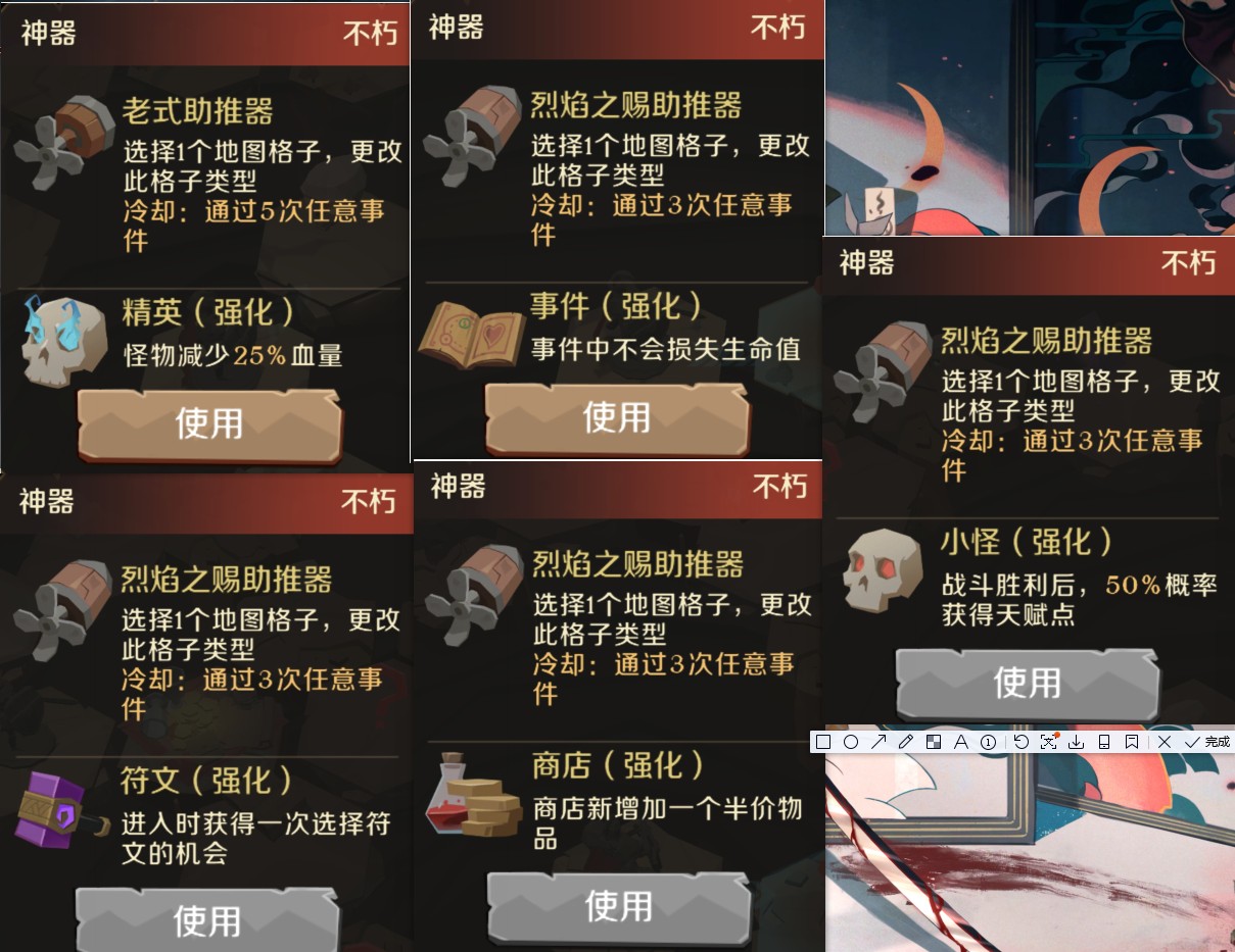 传送到任意位置,触发事件or打完怪回来(目前bug:使用传送之后迷雾会失效,可以攒一个使用机会在每层开局用)