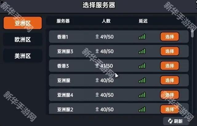 可以看到游戏服务器的延迟情况,在这里可以选择信号较好的区服。