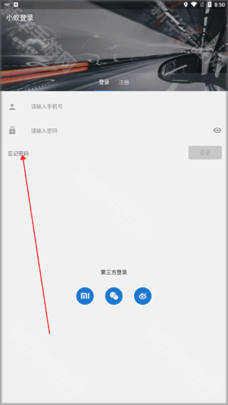 1、下载安装小蚁行车助手安卓版,点击忘记密码。