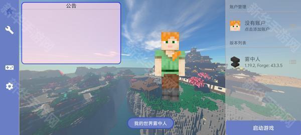 1、打开我的世界雾中人手机版,点击右上角账户;